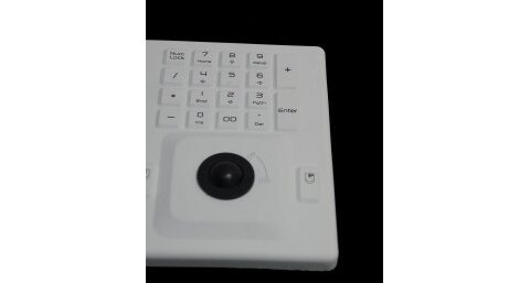 Klawiatura RKM-IK800OFTB wyróżnia się eleganckim designem i praktycznymi funkcjami. Obejmuje 106+5 klawiszy, w tym wbudowaną klawiaturę numeryczną oraz precyzyjny trackball, który zapewnia wygodne i efektywne wprowadzanie danych. Praktyczny przycisk Power ON/OFF pozwala na wygodne wyłączenie urządzenia, co jest szczególnie przydatne podczas czyszczenia — bez potrzeby odłączania jej od komputera.